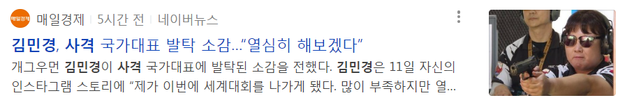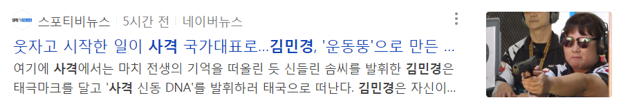 운동뚱 예능으로 시작한 개그우먼 김민경씨가 사격을 배운지 1년만에 국가대표로 발탁되었다는 소식이네요!